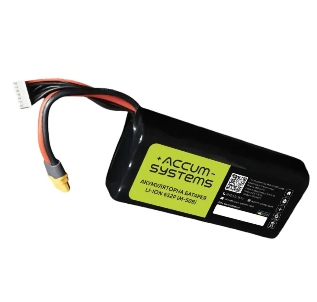 6S2P Li-ion Molicel M50B battery pack is a reliable and high-performance power source for FPV drones, electric vehicles, robotics, and autonomous power supply systems. The use of Molicel INR21700-M50B cells provides a high capacity of 10000mAh. Overheat and overload protection. Low internal resistance for maximum efficiency. High voltage stability for stable electronics operation. Minimal self-discharge – retains charge even during long-term storage. Long service life – up to 500+ charging cycles. Compatibility with a wide range of devices – suitable for FPV drones, electric vehicles, industrial equipment.