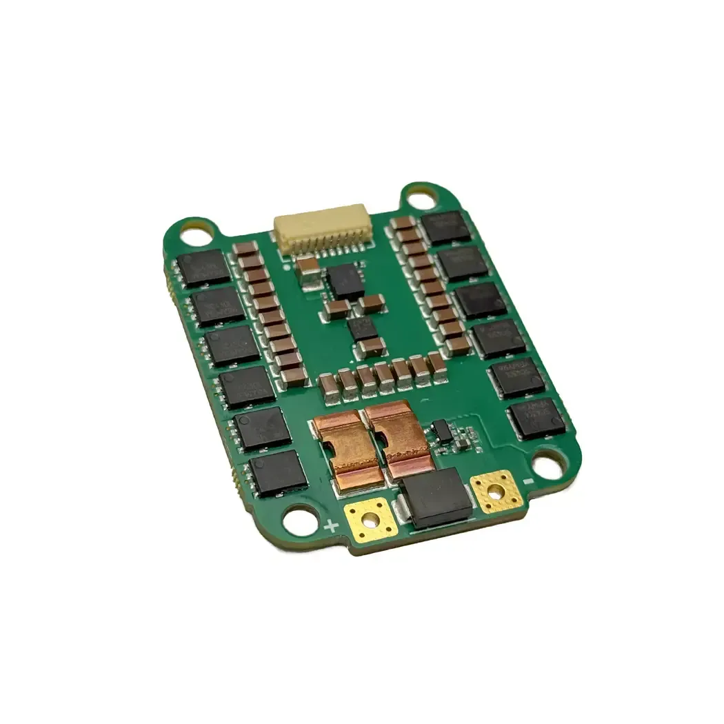 Amelia ESC 4in1 6S is a highly integrated speed controller for 4 brushless motors without the use of rotor position sensors. Thanks to a 10-layer board with thick copper layers, the controller withstands high currents for a long time. Thanks to the built-in TVS, voltage spikes are leveled and EMI is improved. The ESC has an excellent power density to weight ratio.