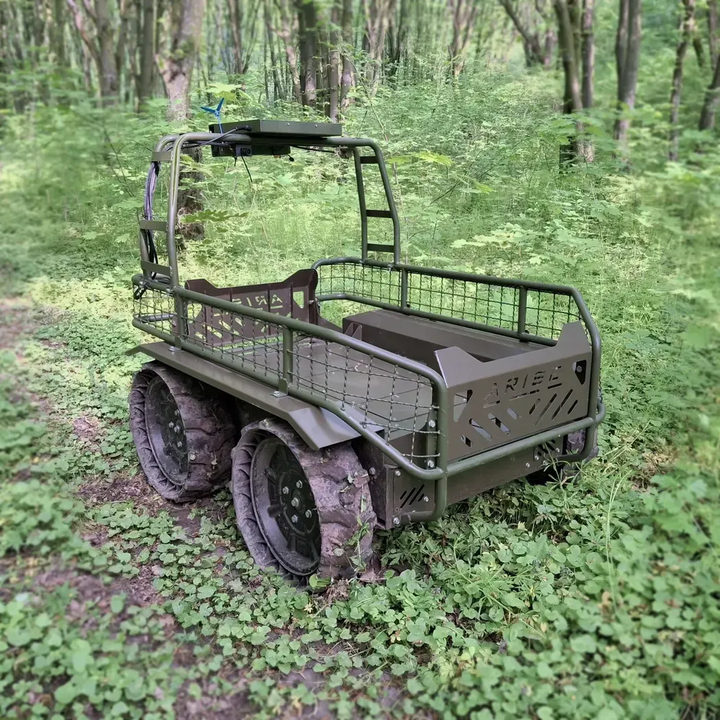 The “Arise” UCG (Unmanned Ground Complex) is a robotic complex on a 4×4 WD wheeled chassis, designed for logistics tasks, and can also be used for evacuation. Its mass and size characteristics allow the UCG to be used as a platform for installing automatic turrets.