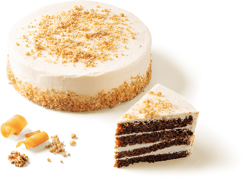 Excellent carrot cake with walnuts with great flavor and quality. Carrot base, walnuts, cream cheese.