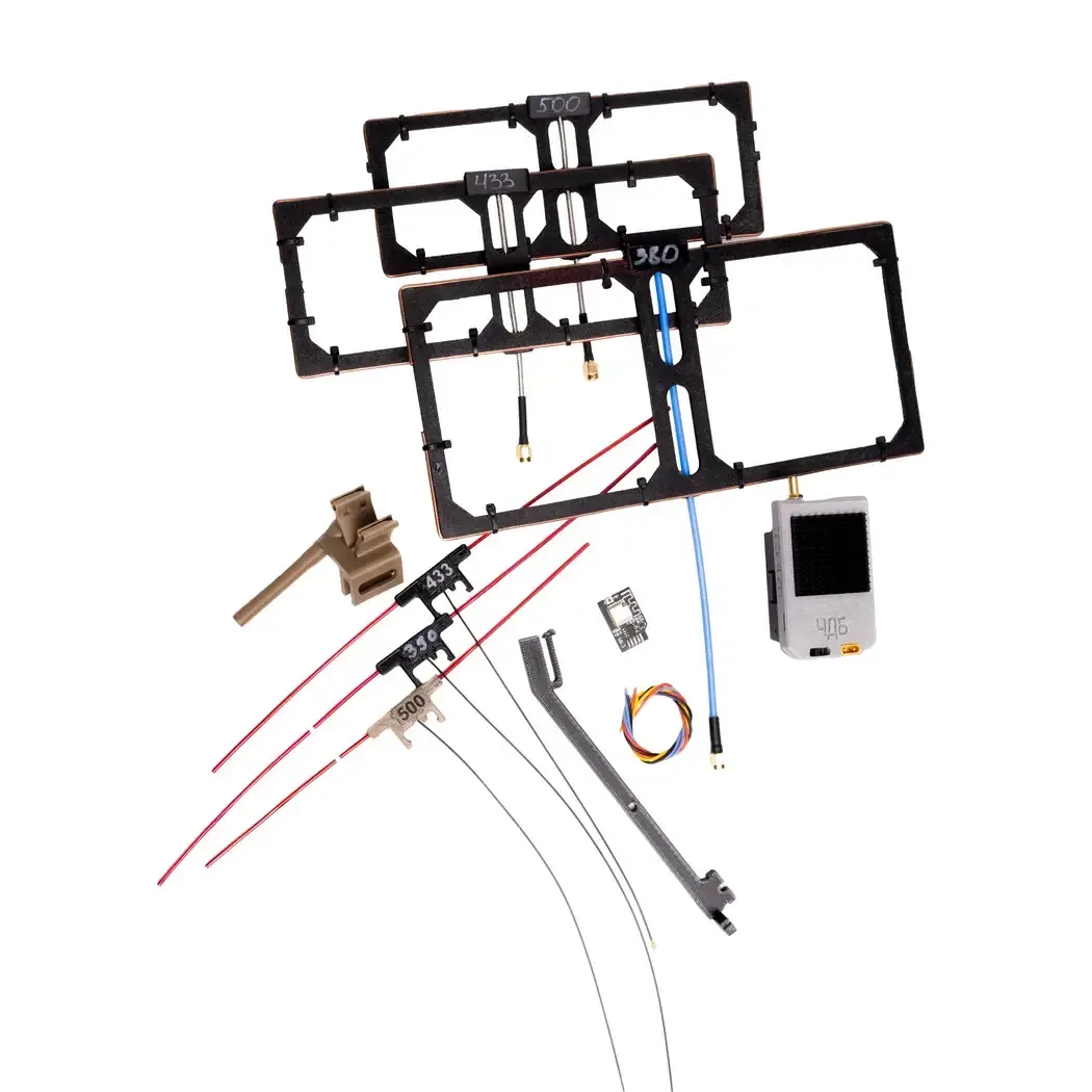 CHDB Radiolink TX+RX 360-550 MHz – drone control system. Enhanced frequency range: 360-560 MHz Firmware MIL ELRS Output power 1.2-0.9 W Power supply voltage: DC 6.5V ~ 26V External power connector: XT30 Antenna connector: SMA: Wi-Fi support; Passive cooling system; RF Chip SX1278; FHSS support; Input voltage 5V. Antennas to choose from: 380, 433, 465, 485, 510, 550 MHz; Bandwidth with VSWR <1.5 — 20-30 MHz; Setting any operating frequency and channel width from the remote control and via Wi-Fi; Backpack — switching video frequencies during flight from the remote control; Encryption — protection against spoofing. Kit: - TX transmitter - Moxon antenna (frequency range selectable) - RX receiver - Dipole antenna (frequency range selectable) - Mount for attachment to the frame - Heat shrink tubing - Wires for soldering.