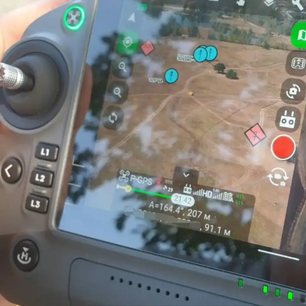 The “ComBat 4 – DJI Pilot” flight application is an autonomous module to the “ComBat 4” situational awareness platform, which allows replacing the standard flight program of DJI Enterprise (Matrice/Mavic) drones, and obtaining an additional ability to project tactical data from the map, received from other ComBat 4, ATAK, Kropyva or Delta users, as augmented reality over video, as well as determine the coordinates of any visible point and linear objects in space by touching the screen, or using optical tracking, including in the absence of GNSS (only on Matrice 4T), using the built-in optical navigation subsystem.