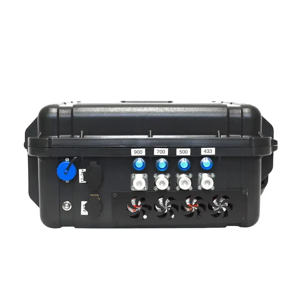 Trench (automotive) electronic warfare (EW) device, a professional system for neutralizing drones with a long range and high power. Covers a band in the 400-1020MHz range. The device’s continuous operation time is 60-120 minutes. Powered by a built-in battery and from a car.