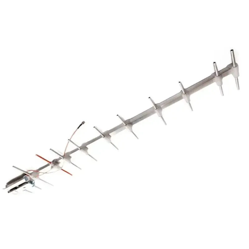 Wave channel antenna with 10 elements, gain coefficient 11 dBi, central tuning frequency 768 MHz, with a working band according to SWR < 1.5 - 70 MHz. AHK 10-11/768 directional action of linear (vertical or horizontal) polarization. Ideal for FPV radio communication systems for remote control of drones or other UAVs operating in the frequency range 730 MHz - 800 MHz.