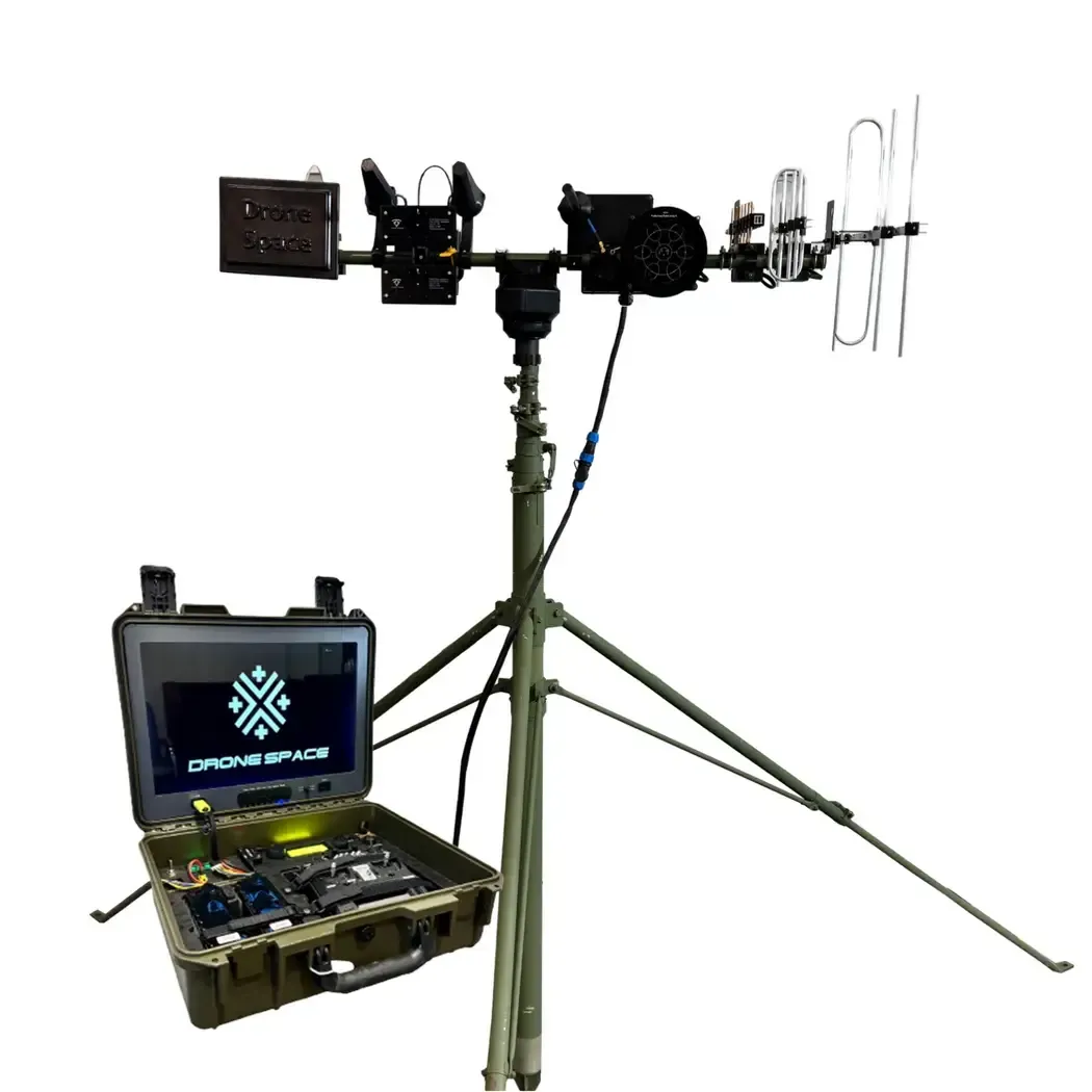 Ground control station “Dronarnya 5.0” – a system consisting of an antenna complex and a control case that allows the operator to control UAVs over long distances from a protected position. To effectively bypass enemy electronic warfare, the function of transmitting a control signal simultaneously from three available radio transmitters has been implemented. It is also possible to use each of the transmitters separately, which eliminates the need for a unit to have several GCS for drones with different frequency ranges. video receivers: Digital communication system: Walksnail 3 radio transmitters that can work both simultaneously and one by one Remote control of the rotary mechanism. Switching video communication channels with the drone directly in flight. Fast search for your drone’s video frequency. Mast height 12 meters Video signal on the monitor to the “last meter” (The common problem of the “blue screen” has been eliminated). Auto-scanning and viewing video frequencies with a signal.