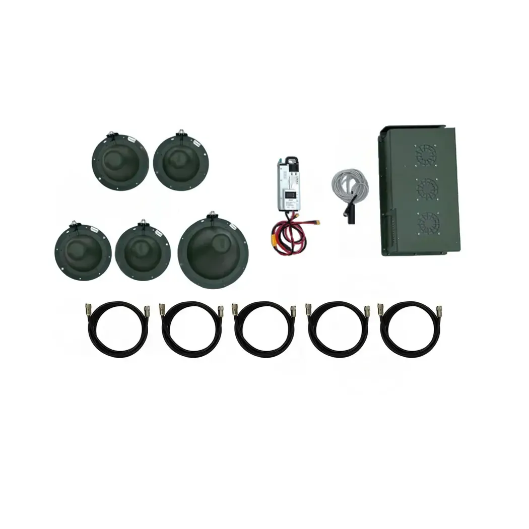 REB 8.2 is a compact and powerful Ukrainian-made electronic warfare system designed to effectively suppress enemy control and communication channels in the 1000–1500 MHz frequency range. The device provides up to 50 W of power per channel with an effective range of up to 300 meters. It operates on 24 V power and has an autonomy of up to 7 hours. It is equipped with a domed quadrifilar antenna and a forced air cooling system. The product is manufactured individually with the possibility of full customization to the customer’s needs.