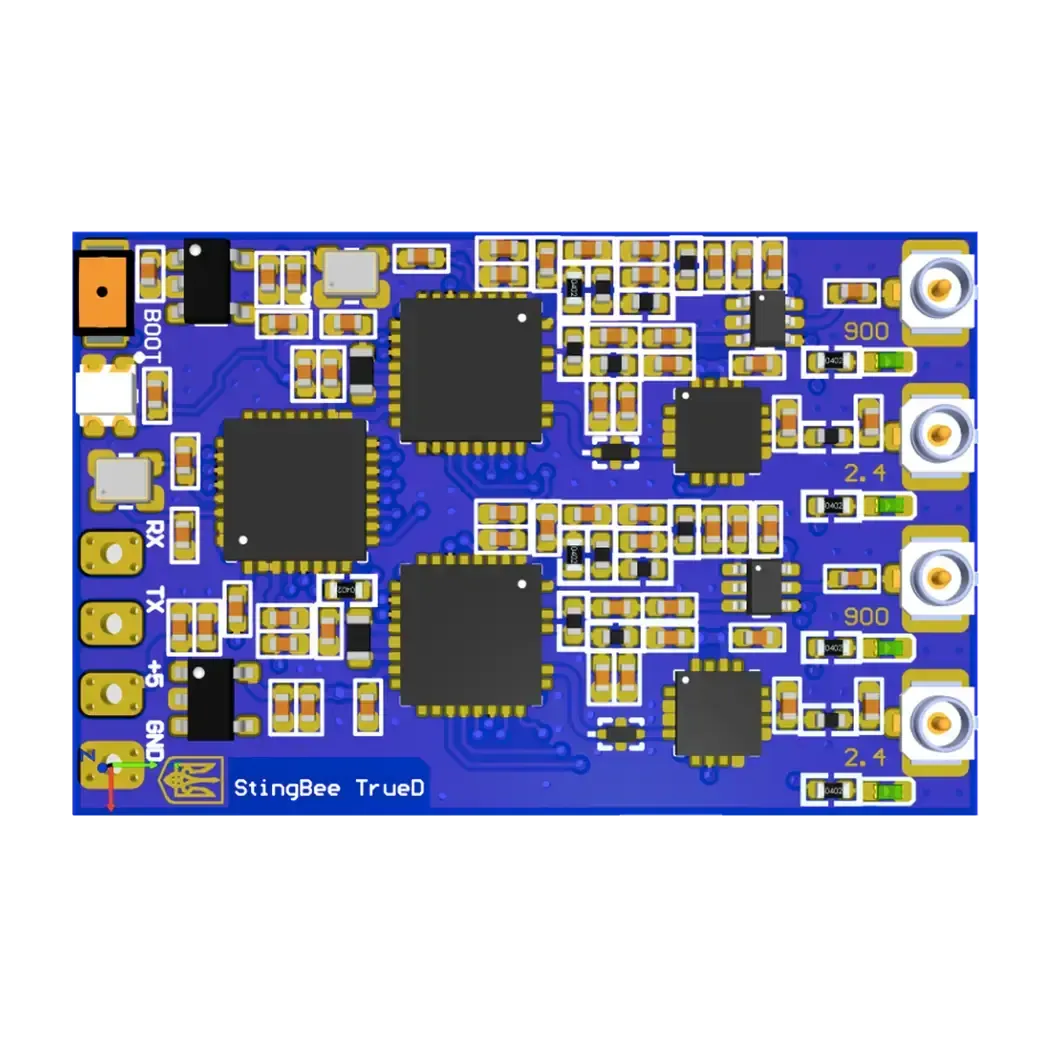 ELRS StingBee TrueD is an advanced dual-band dual-channel Gemini-type receiver designed to provide reliable and stable radio communication in remote control and FPV systems. StingBee TrueD boasts two dual-band sections, each capable of simultaneously operating in the 2.4 GHz and 900 MHz bands, ensuring exceptional interference suppression and eliminating the risk of packet loss. With StingBee TrueD, you can be confident that your signal remains strong and reliable, giving you the confidence to push your limits and explore new horizons. Enhance your drone control experience with the unparalleled connectivity and performance of the StingBee TrueD receiver.
