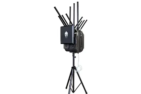 AD KRAKEN-A is a multi-band high-power EW tool. Effective against FPV drones in the 700-1050 MHz frequency band, as well as in non-standard 1.4 and 2.4 GHz bands. Counteracts drones that drop ammunition at 2.4 and 5.8 GHz frequencies. An additional 5.2 GHz band interferes with drones with a video channel at this frequency. It has a directional antenna unit and a remote control with a 20 m cable length. The range of electronic suppression when using omnidirectional antennas is up to 800 m, when using an antenna unit with directional antennas – up to 2000 m.