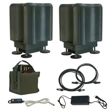 The FPV control suppression complex is designed to significantly increase the percentage of preservation of rolling stock of vehicles from attack by kamikaze drones, as well as trenches and stationary objects. The complex consists of independent blocks. Each block has a separate case, antenna, and connector for connecting power from a LiFePo4 24 volt 12 a/h battery. The antenna on each block is designed for a specific frequency that it suppresses and is not removable. This excludes the possibility of connecting the block without an antenna, which almost always leads to the burning out of amplification elements in the electronic module of the block. The antennas have a reinforced design to increase the chances of maintaining their geometry under the influence of weather conditions and vehicle vibration. The blocks have rubber-impregnated neodymium magnets in their design, making them very easy and quick to install on vehicles. Radio suppression height (above itself), from 25 to 100 m.