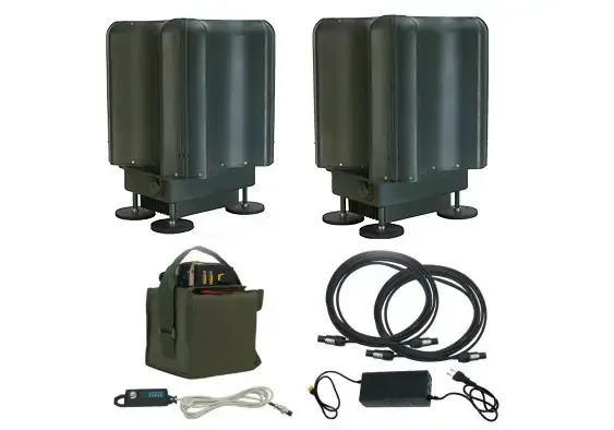 The FPV control suppression complex is designed to significantly increase the percentage of preservation of rolling stock of vehicles from attack by kamikaze drones, as well as dugouts and fixed objects. The complex consists of independent blocks. Each block has a separate body, antenna and connector for connecting power from a LiFePo4 24 volt 12 a/h battery. The antenna on each unit is designed for a certain frequency that it suppresses and is not removable. This excludes the possibility of connecting the unit without an antenna, which almost always leads to the burnout of amplification elements in the electronic module of the unit. The antennas have a reinforced structure to increase the chances of maintaining their geometry under the influence of weather conditions and vehicle vibration. The blocks have rubber-impregnated neodymium magnets in their design, making them very easy and quick to install on transport. Radio suppression height (above itself), from 25 to 100 m.