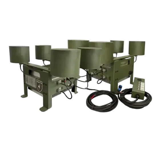 The Saqribs 8 portable electronic warfare system is designed to counter FPV drones in three radio bands.