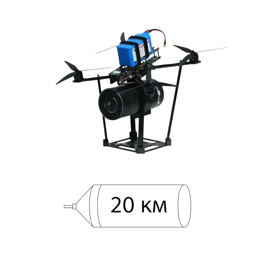 FPV drone 13” Harpoon (optics, up to 20 km) A reliable solution for complex tasks. Equipped with a fiber optic coil, which provides stable control without interference at a distance of up to 20 km. High-quality assembly, resistant to electronic warfare, without breaks.