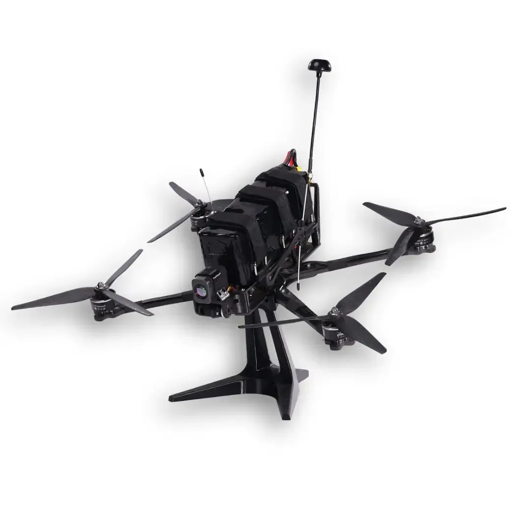 UAV “HROMYLO 5.8T” is a light and maneuverable 10-inch FPV drone, designed for quick pinpoint strikes on enemy personnel, armored vehicles, and fortified positions. The UAV operates in the 5.8 GHz range with a powerful video transmitter (4 W) and supports a thermal imaging camera, allowing for accurate aiming at night.