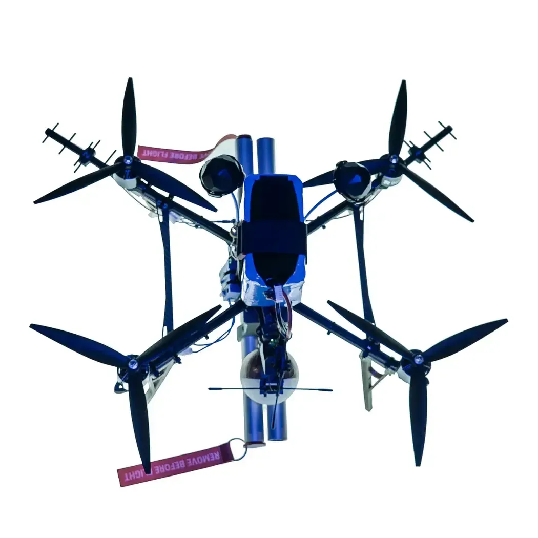 The Impulse UAV can be used by units of the Armed Forces of Ukraine to destroy tactical UAVs such as DJI Mavic, Matrice, etc. at an altitude of up to 2000 m, in normal meteorological conditions, at target speeds of up to 80 km/h, by hitting enemy UAVs with a shot from a board recoilless firearm module at a distance of up to 10 m. Targeting from a distance of 2000 m to the distance at which visual identification of the target UAV is possible is carried out using an onboard direction finder, which determines the direction to the radiation source at a frequency of 2.4 GHz and the level of its signal in dBm, which is displayed on the Impulse UAV operator’s screen. The operating frequency range of the direction finder can be configured from the Radiomaster TX 16 control equipment during flight, with a step of 10 MHz in the range 2400 MHz – 2460 MHz.