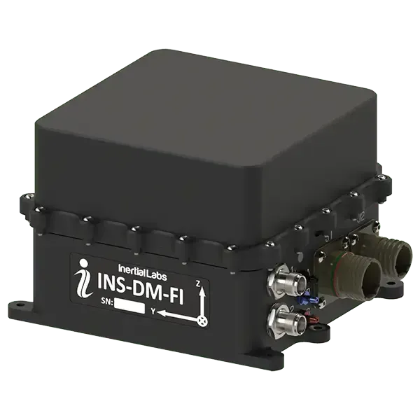 Inertial navigation system with GPS support INS-DM-FI – is the latest inertial navigation system (INS) developed by Inertial Labs using tactical-grade fiber-optic gyroscope technology. INS-DM-FI is the result of more than 20 years of experience in developing and supplying INS solutions for ground, marine and air platforms worldwide. This system, INS-DM-FI, is a new generation version of a super-strong, electromagnetically and electromagnetically protected, fully integrated, combined INS + AHRS + MRU + FOG system based on IMU (AHRS) with a high-performance positioning and heading reference system (FOG) and an optional built-in air data computer (ADC). It determines position, velocity, vertical and horizontal displacement, and absolute orientation (heading, pitch, and roll) for any device on which it is installed. Horizontal and vertical position, velocity, and orientation are determined with high accuracy for both stationary and dynamic applications. Inertial Labs INS-DM-FI contains inertial measurement units (IMUs) using tactical-grade fiber-optic gyroscopes and MEMS accelerometers. INS-DM-FI also uses embedded multi-constellation GNSS receivers (GPS, GLONASS, GALILEO, QZSS, and BEIDOU), such as NovAtel OEM7 series, u-blox F9 or Septentrio mosaicH series. The INS-DM-FI design also includes an optional built-in air data computer (ADC) supported by two barometers, and the ability to support an external autonomous magnetic compass (SAMC).
