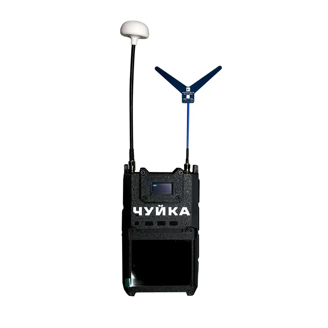 “Chuyka 2.0” is an innovative portable drone detector developed to meet the needs of the Ukrainian military in modern technological warfare. It is designed for individual use. It detects and intercepts an analog video signal from an FPV drone to the operator, providing a scanning speed of 2-3 seconds, which allows the soldier to react to the threat in advance and save lives. Principle of operation: In the current version, the detector operates in the frequency ranges of 900-1700 MHz and 5000-6000 MHz with parallel high-speed auto-scanning. In case a UAV appears on a frequency within the antenna sensitivity (depending on the antennas – detection up to 2500-3000 m), the detector emits a characteristic sound signal. The repetition rate of the signal depends on the distance between the drone and the user, has several levels and increases as the drone approaches. Simultaneously, a small screen displays the number of signal sources (drones, up to 3 different ones simultaneously), as well as the frequencies and channels on which they are detected. The user, through the settings menu, can enable the display of intercepted video on a larger monitor for an adjustable (in seconds) period of time. During this time, the user can switch between scanned channels in a loop (with the timer resetting). If the user does not press anything, after N seconds the detector automatically switches to scanning mode. The sound signal is duplicated by light signals with the possibility of turning off the sound. Features: It can distinguish the operation of an FPV drone from interference due to hardware capabilities and algorithms to confirm the presence of a video signal on an active channel with a high power level. Supports interception of an inverted video signal (after the scrambler). It has an additional operating mode as a video signal receiver on any channel from the operating ranges without scanning. Provides for the possibility of replacing antennas (declared characteristics are guaranteed only when using complete antennas).