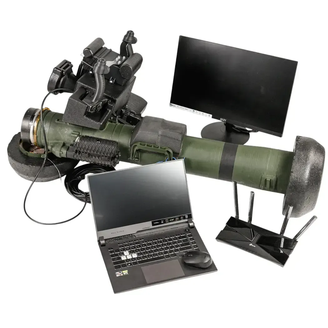 It consists of a full-size JAVELIN ATGM model and a software and computer complex. The training complex allows: • initial training of the JAVELIN ATGM operator (checking the launcher model, familiarization with the elements of the complex and controls, aiming technique, preparation for firing, firing technique, safety rules); • conducting training and teaching to fire at dynamic ground targets that maneuver, fast and slow; • practicing firing in different fire modes (frontal attack; pursuit attack; attack of a parallel moving target); • practicing firing in various conditions, namely (forest, glade, coast, day – clear sky, day – cloudy sky, day – light cloudy sky).