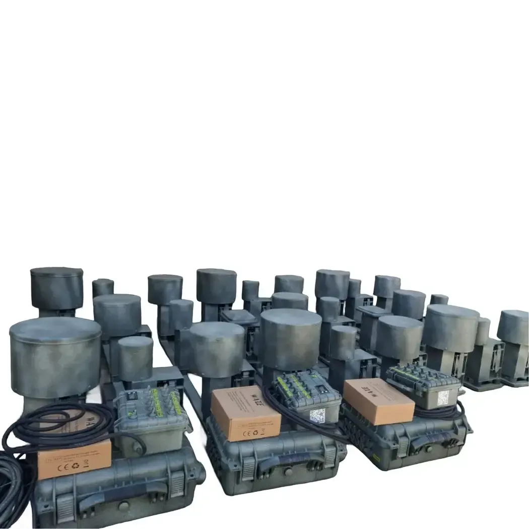 The “Zvirobiy-A10” electronic warfare complex has a modular design. It is used to protect against FPV kamikaze drones and drops from Mavic drones. It uses liquid antifreeze cooling. The electronic warfare system has a separate control unit, to which up to 10 signal jammer modules and a power supply unit with a battery can be connected simultaneously. The control unit allows you to turn on the signal jammer modules separately in any variation of frequency ranges, depending on the need, or all together. Available variations of operating frequency ranges: 250-310, 310-370, 370-430, 430-490, 490-550, 550-620, 620-720, 720-830, 830-930, 950-1050, 2100-2200, 2200-2300, 2400-2500, 2500-2600, 2600-2700, 2700-2800, 5150-5250, 5725-5850 MHz. Quadrifilar antennas are placed in a protective casing.