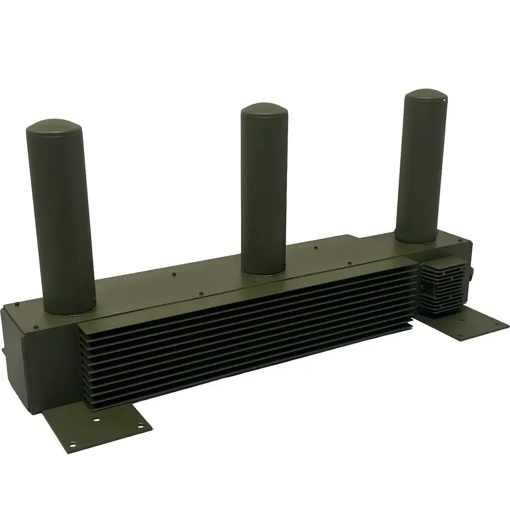 REB OTAMAN-A with three ranges of radio interference. The device has a remote control with an indication of REB operation. Interference in each of the three ranges is generated by three modules with a power of 50 W each. The device can create dome protection thanks to omnidirectional antennas. We will send a video of the tests upon request. PRODUCT SPECIFICATIONS Total output power – 150 W. The range of the device (distance of suppression of UAV functioning) depends on the location of the device and the operator. At a distance of the operator from the drone of 1600 meters and a power of 1 W, the drone will lose connection at 200-500 meters from the REB. The radiation pattern of the antennas of each device: dome 360°. Ability to monitor the operation of the device in real time. Protection against over-polarity. Device cooling system: passive cooling. The REB body is moisture-resistant and with passive cooling, which allows use in the rain.