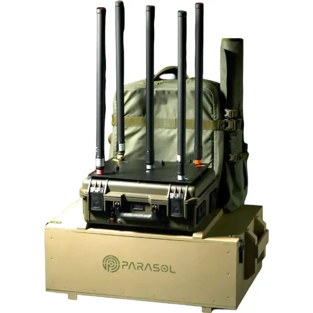 «PARASOL» 01 is designed to disrupt (terminate) the tasks of enemy UAVs, including FPV – drones, by radio-electronic suppression of onboard radio-electronic systems of UAVs (receiver), the so-called trench electronic warfare. Weight, kg, no more than 23 kg Overall dimensions, L×W×H, mm, no more than: – without antennas 500×400×210 – antennas installed 500×400×1000