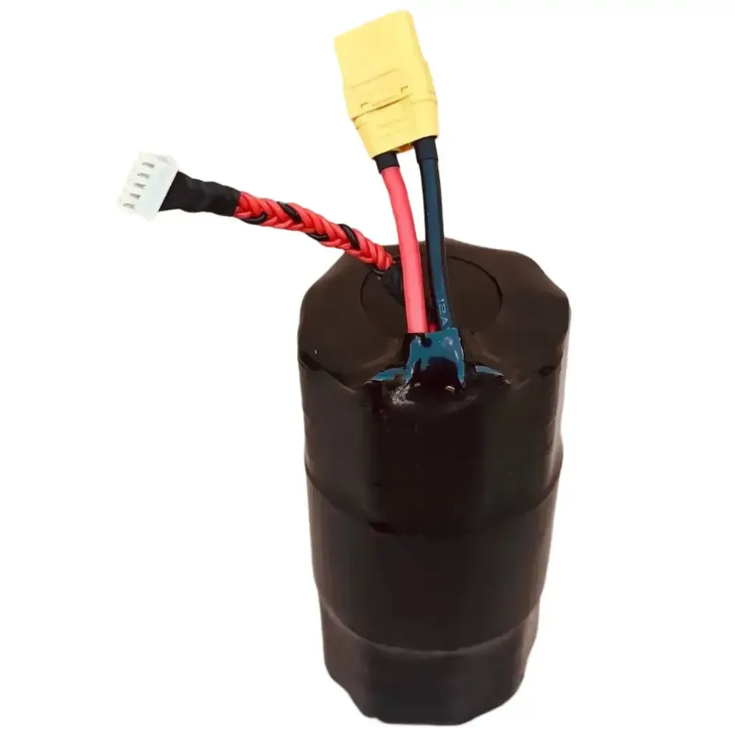 Rechargeable assembly (battery) for FPV copters / drones based on high-current, high-quality Molicell INR-18650-P28A 35A cells. The battery is designed for use on FPV copters for flights of increased range and duration. Thanks to its larger capacity, lower internal resistance, and lower battery temperature, this battery will provide longer flight time and efficiency compared to other same-class and similarly sized batteries.