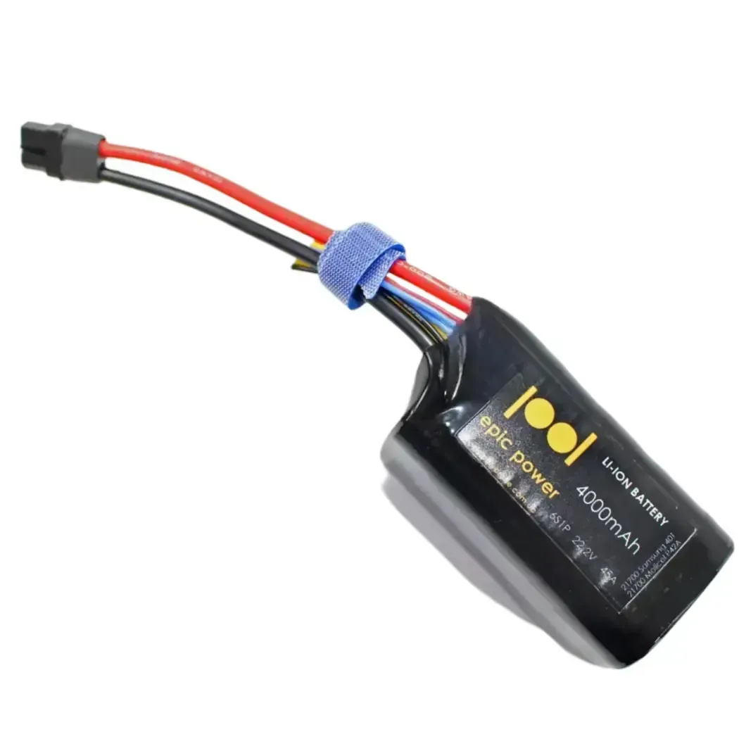 Rechargeable assembly (battery) for FPV copters / drones based on high-current, high-quality 21700 Samsung 40T 4000 mAh 45A elements. The battery is designed for use on FPV copters for increased range and duration flights. Due to its larger capacity, lower internal resistance, and lower battery temperature, this battery will provide longer flight time and efficiency compared to other same-class and similarly sized batteries.