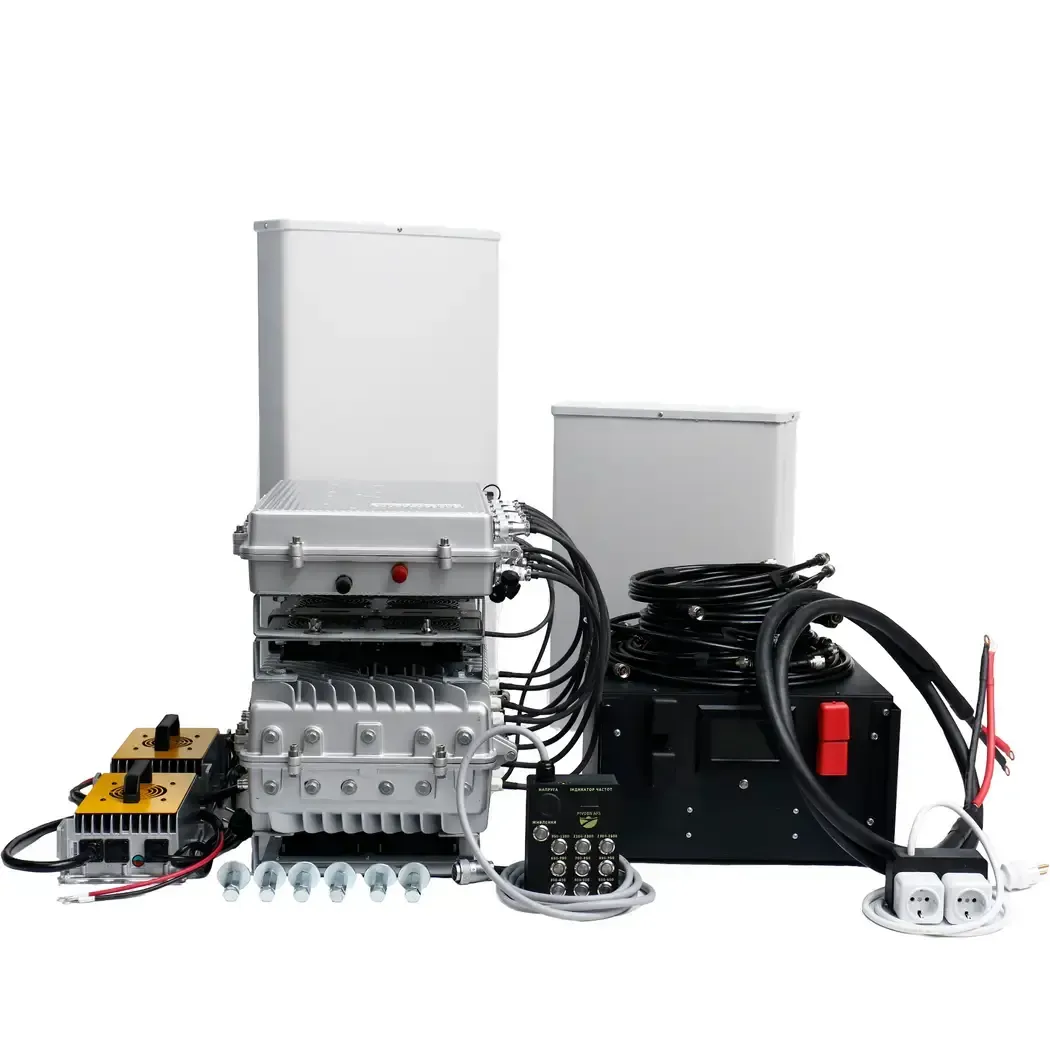 GENERAL INFORMATION: – Possible arbitrary selection of ranges – Maximum number of modules: 9 – Frequency range: 100-6000MHz – Input voltage: 12-24V, 220V – Power per module: 100W – Suppression range: up to 3000m – Control: button, remote, remotely – Total operating time: 60min – Directional antenna: 16dbi – Case size: 520x370x210mm, 70kg – Case: aluminum, IP-55, active external cooling