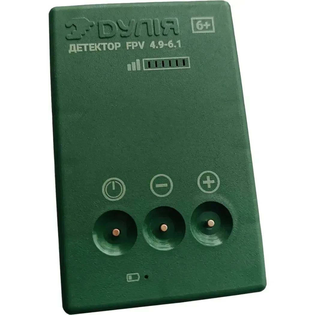 Personal (pocket) FPV drone detector for determining the presence of a video signal at frequencies of 4.9-6.1GHz. The detector operates in passive mode (only scanning the air, without emitting), which makes it impossible for enemy EW/REC means to detect it. The detector analyzes the presence of a video signal, which significantly reduces the number of false positives from routers and other possible wireless devices or EW means.