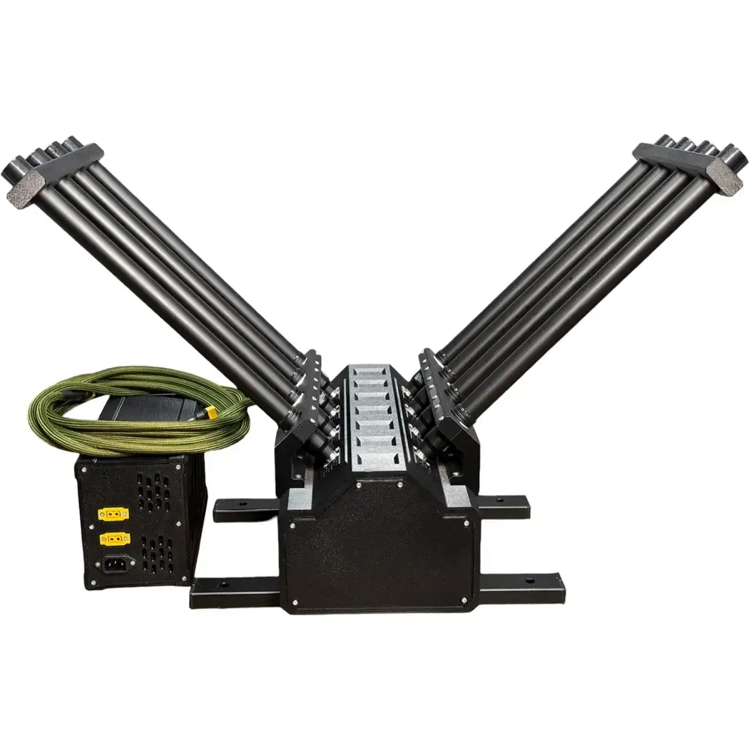 MAHAON is a powerful FPV drone protection system that can be used on both moving vehicles and stationary. Antennas +- 45 degrees and double channels allow covering vertical and horizontal polarizations. The device has a sealed case resistant to weather conditions (rain, snow, and wind). Powerful active cooling with protected elements allows long-term operation in hot climatic conditions.