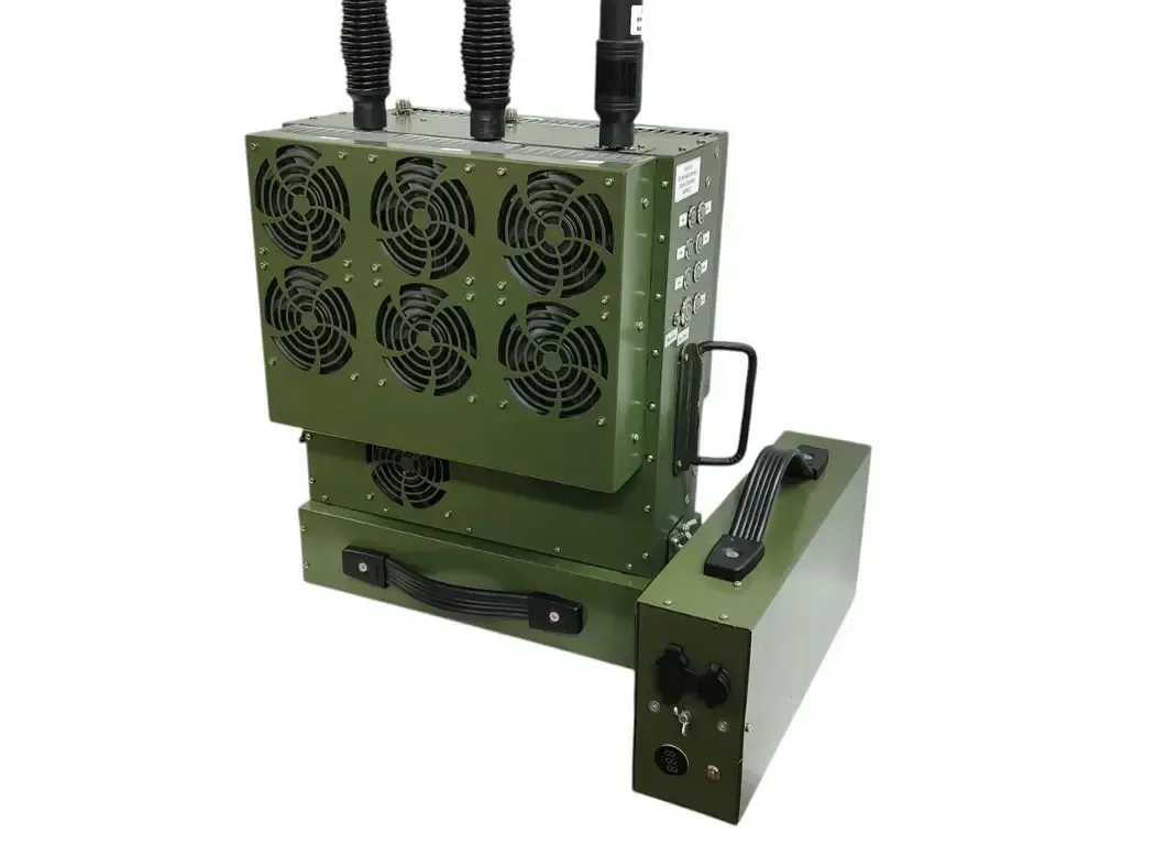 REB ‘Prymara’ complex – a utilitarian complex with the possibility of quick battery replacement, remote control that can be used both in position (trench version) and can be installed in a car. Main characteristics of the device: Frequency range from 700 to 1100 MHz; Jammers – 5 pcs; Power of each generator 50 W; Omnidirectional spring antennas (or others by arrangement) – 5 pcs.