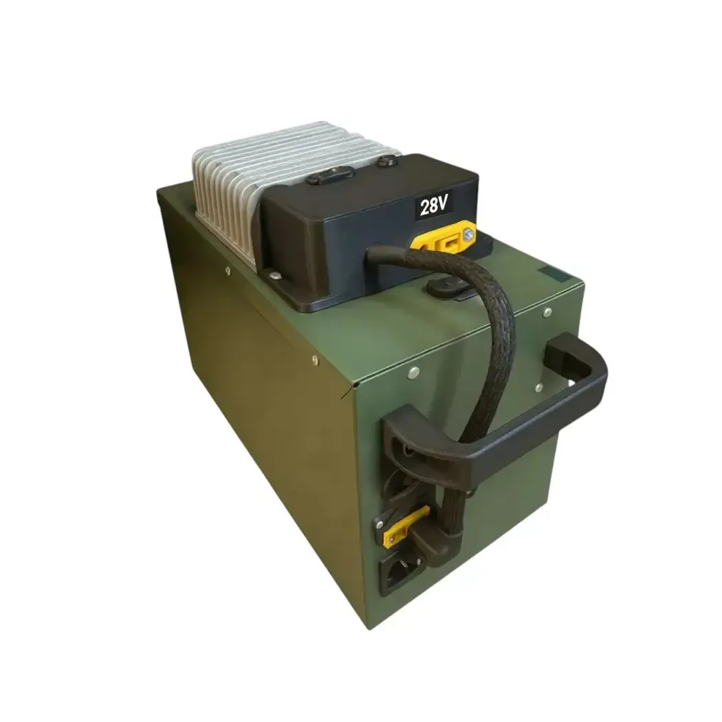 Reb battery – a modular LiFePO4 8S1P battery, designed for reliable power supply of mobile electronic warfare systems. It has a cell capacity of 105 Ah, a built-in 100 A BMS with an active balancer and a 1000 W DC-DC converter, which allows it to stably provide 28 V load at high peak currents. Compact dimensions 350×220×160 mm, weight ≈21.3 kg, durable case and convenient connectors simplify installation and quick replacement in the field. The built-in control and protection system monitors charge/discharge, cell balancing and protects against overloads and short circuits, which makes the battery safe, durable and optimal for autonomous operation of electronic warfare systems.