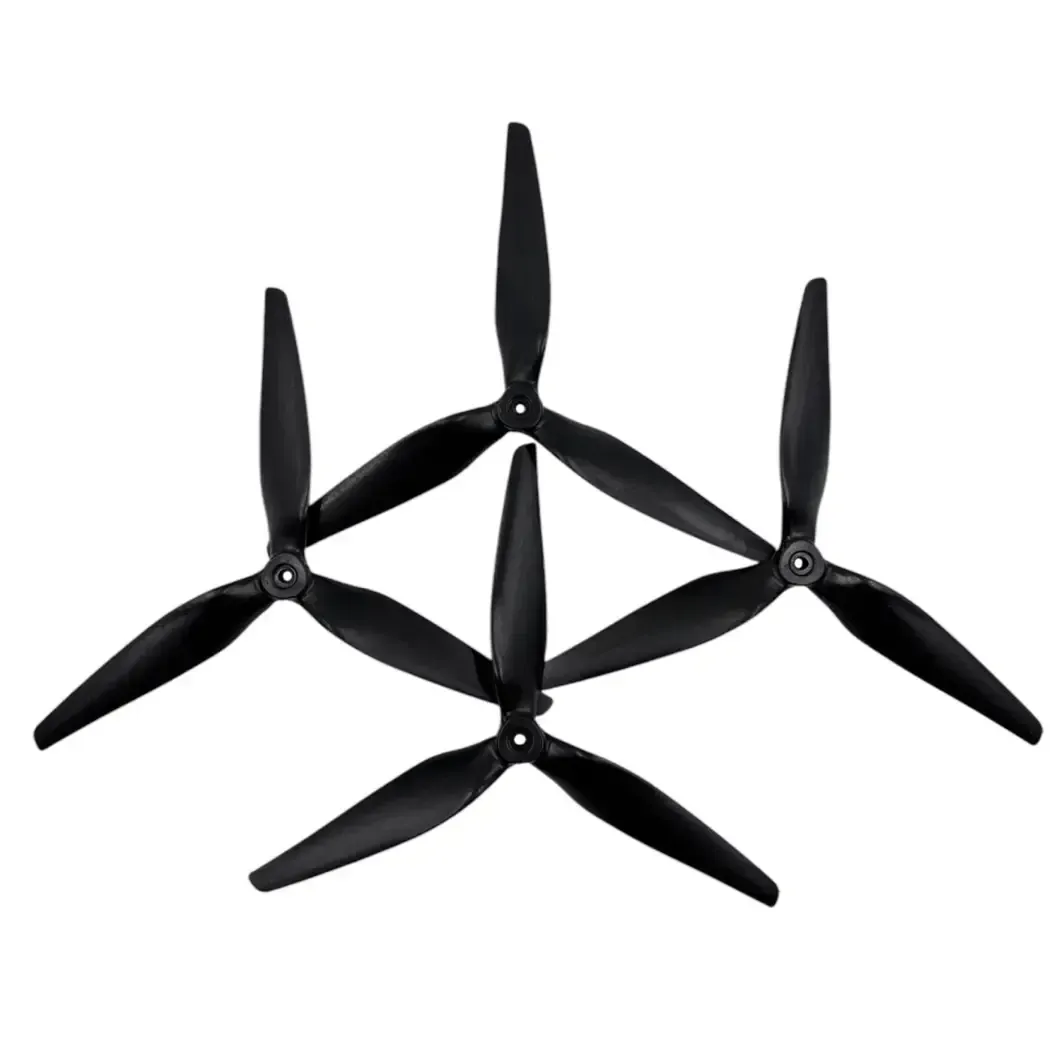 RIY 9x5x3 propellers have three blades, a diameter of 9 inches, and a pitch of 5, which ensures stable aerodynamics. They are produced in Ukraine and tested in combat conditions, confirming their reliability in professional flights. The material is polyamide, reinforced with 40% fiberglass, which increases the strength and flexibility of the structure. The hub has a diameter of 18mm, a thickness of 9mm, and is suitable for an M5 shaft. The weight of 18.5g allows for an optimal balance between endurance and efficiency.