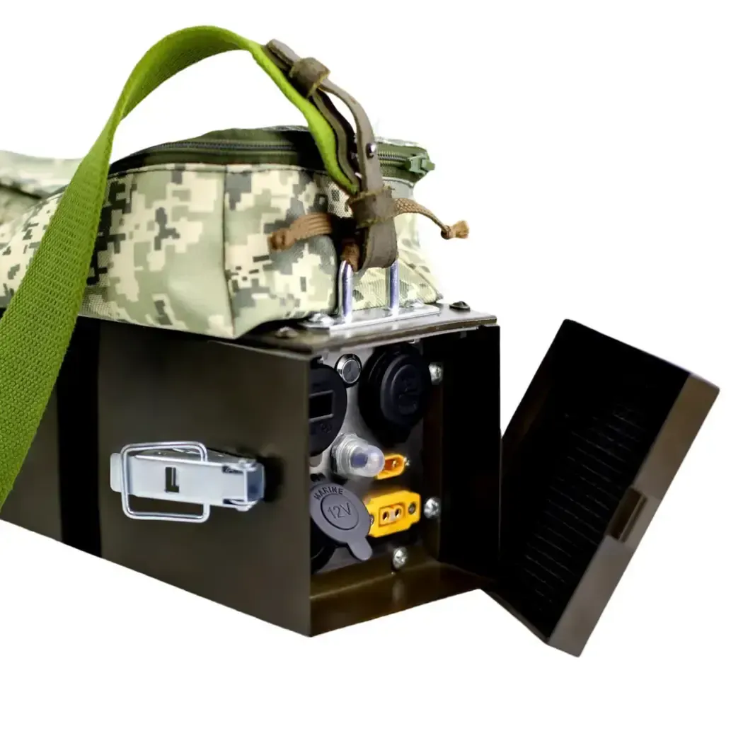 The Scat-260L military power bank is designed specifically for the needs of military personnel. It has a durable stainless steel body, capable of withstanding significant loads and protected from moisture. Among the unique features of the Scat-260L power bank is the ability to “jump-start” 12V car batteries, or instantly charge them using a power connector. With up to 180 A at the terminals, the device can charge a discharged car battery in a minute or start a car up to 30 times. By connecting two devices in series, a 24V network can be obtained, which will allow starting military equipment or performing emergency field welding with a 3 mm electrode for 10-20 minutes. The super-powerful current allows you to easily weld an anti-tank hedgehog or the suspension of an armored vehicle. With the included terminal clamps (crocodiles), the power bank can be charged up to 50% from a conventional car, whose generator outputs 14.4 V. And this in just 15-20 minutes! The Scat-260L power bank can also be charged from a solar panel or a separate powerful 220V mains power supply in 1 hour up to 80%, which can be added to the package. Charging from solar panels and simultaneous use of the device is possible. The 12V power bank socket can distribute 1 A to 10 devices simultaneously, and 2 sockets – to 20 devices, or 10 phones can be charged with 2 A current – and this is not counting the built-in 4 USB outputs. The body is made of stainless steel and protected from moisture. This allows the power bank to be transported in extreme conditions and not be afraid of its damage.