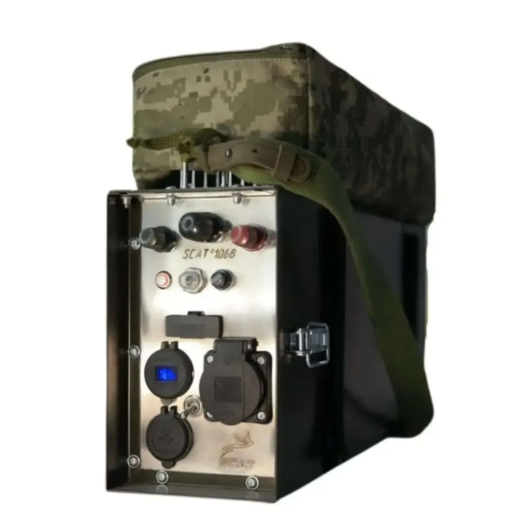 SCAT 860L Charging Station: Power and Independence from 220V Grid SCAT 860L is an advanced model of charging station from the Ukrainian manufacturer Scat Power Batteries, which will provide you with energy in any conditions. It is characterized by power and reliability, which makes it an ideal solution for both household needs and extreme situations. Main advantages of SCAT 860L: Autonomy and stability: Forget about power outages. SCAT 860L will provide your devices with energy anywhere and anytime. Reliable protection and durability: The stainless steel body, protected from moisture, dust and dirt, guarantees long-term operation even in difficult operating conditions. Long service life: Li-NMC batteries support up to 2000 charge-discharge cycles, which ensures long and uninterrupted operation. Using SCAT 860L: Car assistance: Ability to quickly start a car with a discharged battery. Communication and work support: Work with STARLINK for over 24 hours or charge phones, walkie-talkies, drones, as well as photo and video equipment. Power tools: Thanks to the built-in 220V inverter with a power of 500W to 2000W depending on the modification, you can connect tools such as grinders, drills and other devices. Powering household appliances: With an additional inverter, it is possible to connect Starlinks, laptops, refrigerators, vacuum cleaners and other energy-intensive devices. Compatibility with a boiler: The pure sine wave of the inverter allows you to safely connect a boiler, provided proper grounding. Additional features: UPS function (uninterruptible power supply): Provides stable power to your devices even during power outages. Fast charging: The ability to quickly restore charge, which is critically important during frequent outages. Smartphone control: The SmartBMS system allows you to conveniently monitor the charge and discharge level using a mobile application.