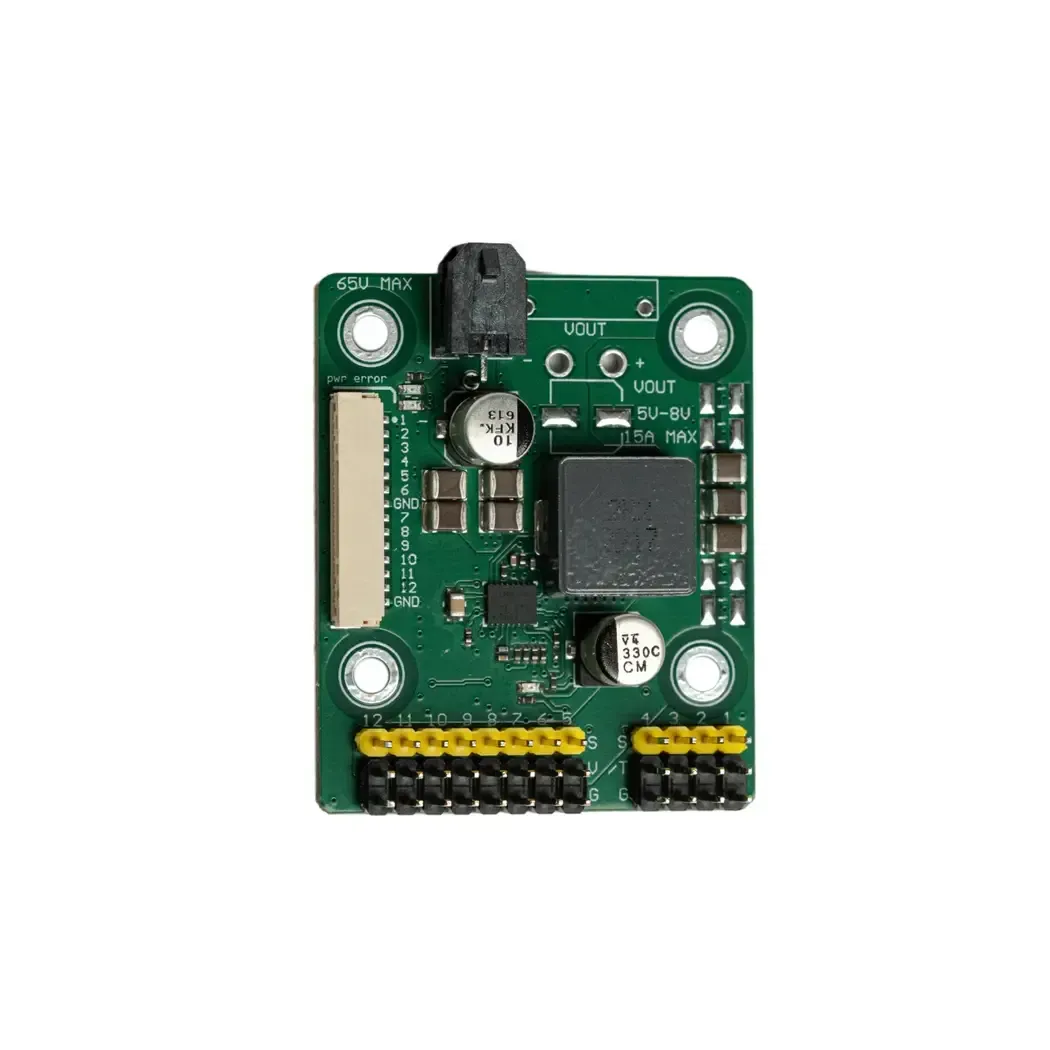 Power module for industrial and professional unmanned systems. It supports input voltage up to 65V (4-14S) and provides a stable output of 5V, 7.4V, or 8V with a constant current of 10A (peak up to 20A). The device has built-in protection against short circuits, voltage spikes, and overload. Thanks to the ability to switch output modes 1-4, the servo rail can not only power servo motors but also receive telemetry from the ESC (when using an H7-Basic flight controller).