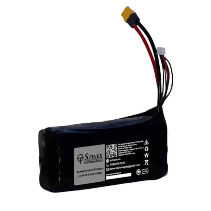 Battery for FPV drone ST-B 45MC(6s3p) – Li-ion battery pack 6S3P 13500mAh – is an ideal option for FPV drones, made from original Molicel INR21700-P45B cells. With high capacity and discharge current. Characteristics: Capacity: 13500 mAh Voltage: 20.4-25.2 V Discharge current: up to 135A Battery type: Li-Ion Cells: Molicel INR21700-P45B Number of cycles: 500 charge cycles Charging current: 8.4A Weight: 8 Height 70 mm. Width 70 mm. Case color: black Features: Made on professional equipment using 2 mm pure nickel strip for reliable connections. AWG12 power wires and XT60 Amass connector ensure stable connection and high performance. High discharge current and capacity provide long flights and stable operation even under high loads. Positive qualities: Made from original high-quality Molicel cells to ensure durability and reliability. Ideal for FPV drones, providing reliable performance under heavy loads. Professional assembly with quality materials guarantees excellent performance and safety.