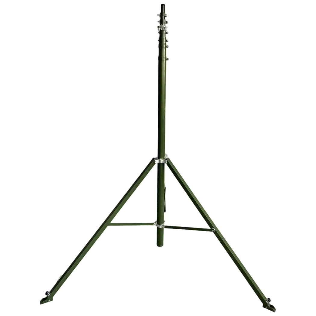 The “Air3F” telescopic mast is made of aluminum and coated with khaki powder paint, which ensures its resistance to corrosion and wear. The mast weighs 12 kg, and the maximum deployment height is up to 5 meters. When folded, the mast height is 152 cm, which ensures convenient transportation and storage.