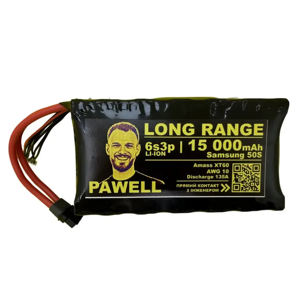 LONG RANGE 15000 6s3p – a high-current battery designed for use in unmanned aerial vehicles (UAVs) with a long flight range. Provides stable power and long operating time. Thanks to its high capacity, the battery is suitable for long missions – the drone must stay in the air longer than the enemy expects.