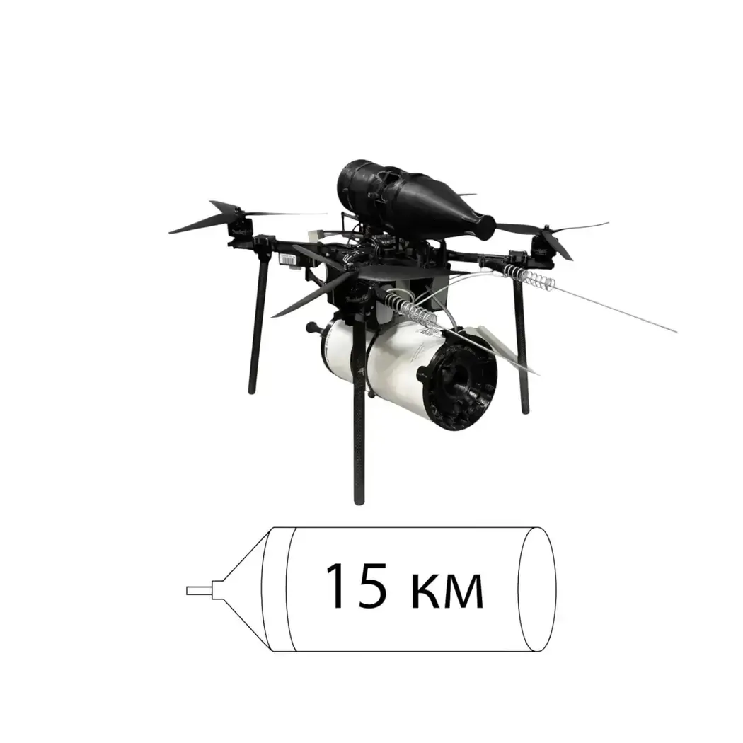 UAV system is a strike unmanned aerial complex with an unmanned aerial vehicle (UAV). The UAV system is designed for use in specialized military tasks that involve hitting enemy personnel and equipment by detonating a warhead attached to the body of the unmanned aerial vehicle (UAV). FPV-drone with fiber-optic control, designed for difficult conditions with active electronic warfare. Provides stable control without GPS and radio communication at a distance of up to 15 km. Suitable for tasks where continuity of control, channel protection and guaranteed mission execution are critical. The ground control station can have different modifications with its own names. The UAV system is equipped with batteries and initiation boards.