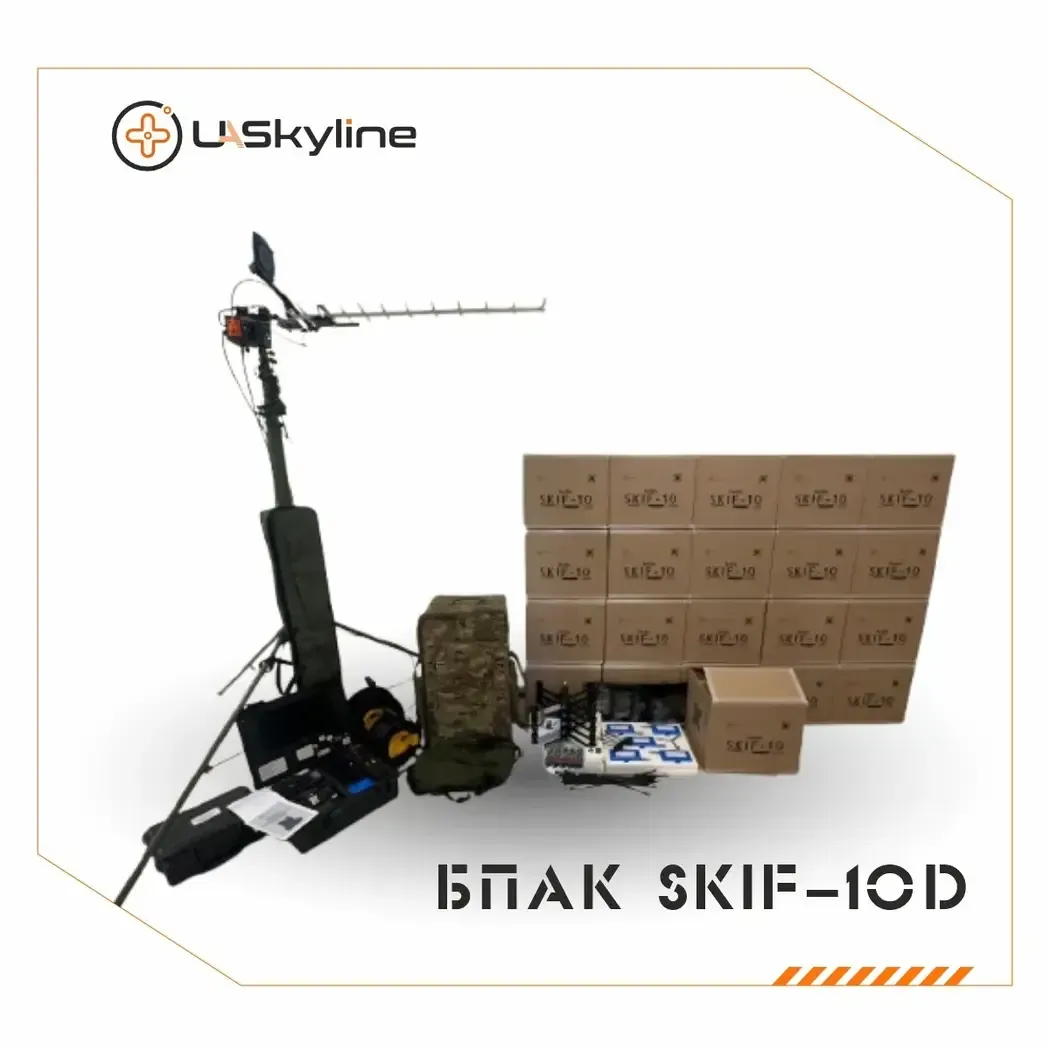 — this is a modern tactical complex, which includes a precise and maneuverable FPV kamikaze drone with a durable 10-inch carbon frame of its own production and an analog course camera. “SKIF-10D” is designed to engage enemy personnel and armored vehicles, perform optoelectronic reconnaissance, aerial photography, and deliver combat or logistical loads. The complex consists of FPV quadcopter-type drones with vertical takeoff and a ground control station with full telemetric and analog video communication in the z bands (optional).