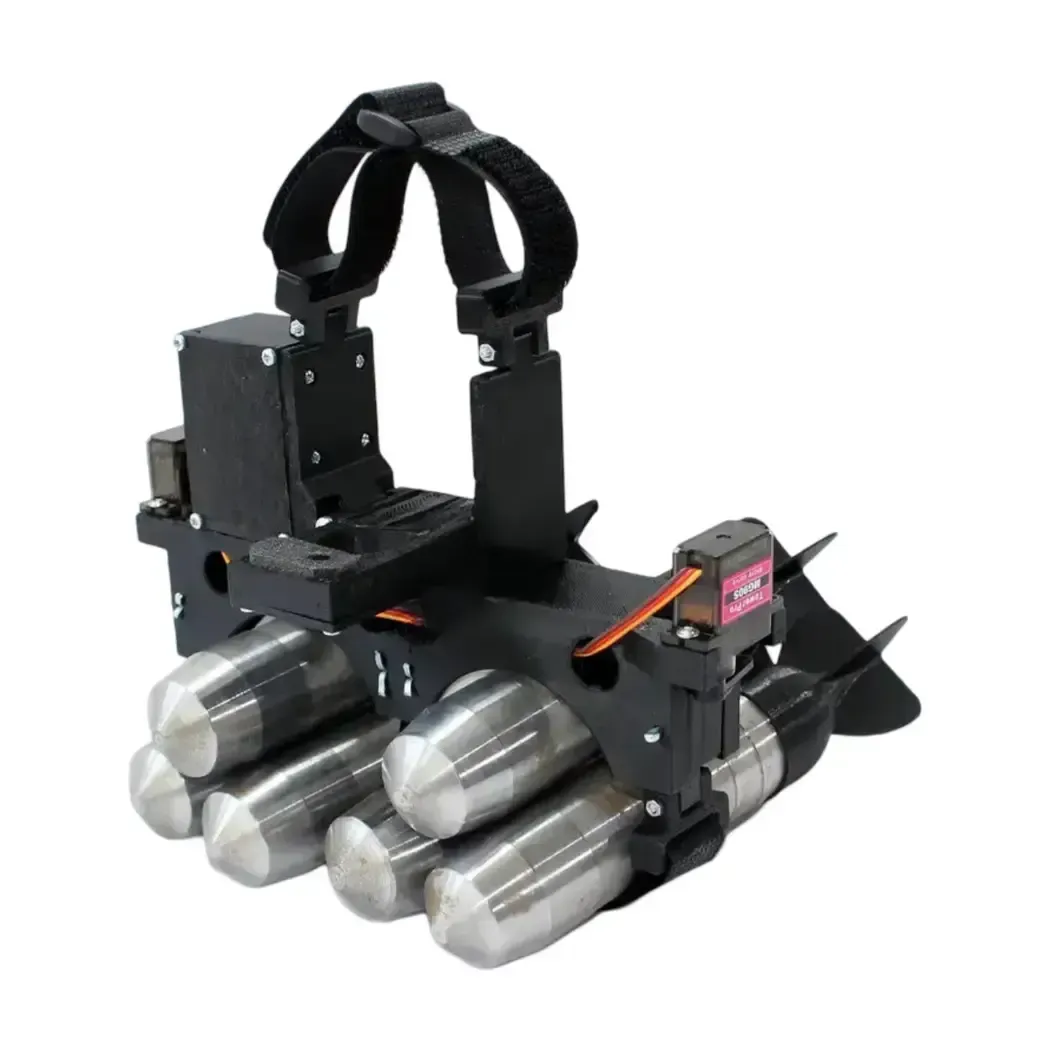 Autonomous system for transporting and dropping various payloads on DJI Mavic 3. The system is an autonomous drone-mounted equipment, has autonomous power, and works by reading drone light signals using a photo element. Thanks to this design, the system does not require interference with the drone’s architecture for its operation. The use of the system does not require disabling the lower position sensors when operating the drone.