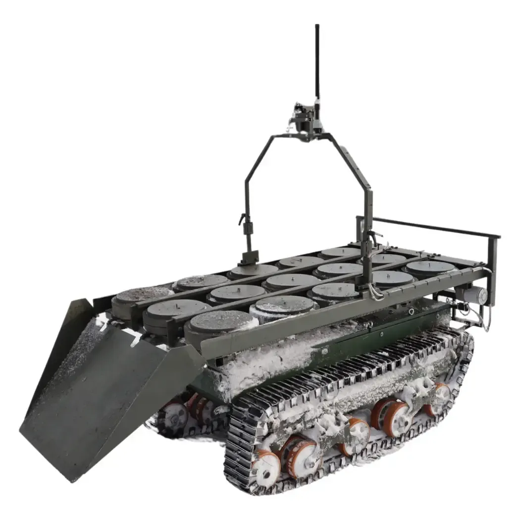 Based on our modular ground robotic platform “Donkey”, we have developed a new modification — a remotely controlled system for dropping tank mines with a capacity of 15 anti-tank munitions. Previously, to perform this task, it was necessary to involve five or more soldiers who worked in dangerous conditions. Now, only one operator is sufficient, who loads the system and controls the drone from a safe distance.
